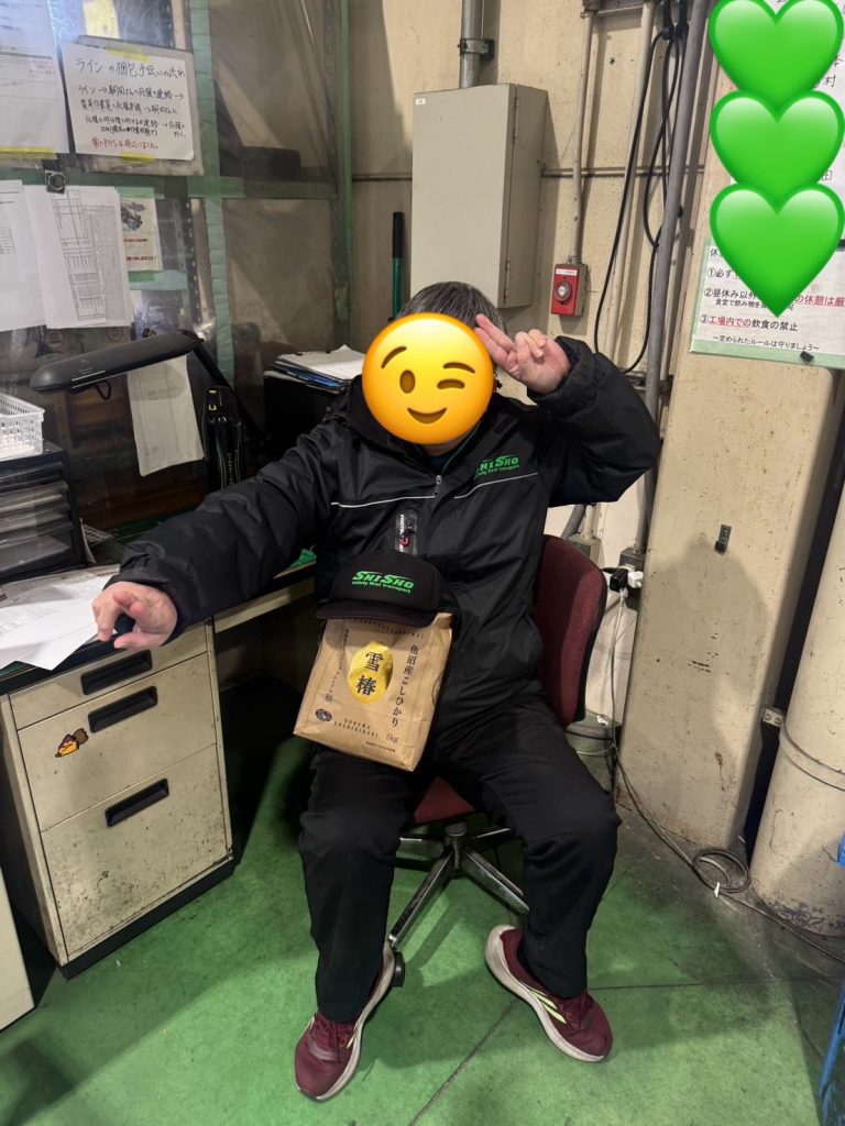 スタッフブログ 2026.01.23 おめでとうございます🍚 お誕生日の方と魚沼産コシヒカリ🍚の記念撮影です📷 この日をとても待ち望んでいた倉庫作業員さんです😽滅❣ポーズとウインクまでしていただきありがとうございます! お誕生日おめでとうございます🎂✨ ❄ドライバーさんからの写真❄ 前の記事