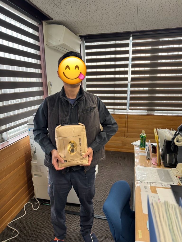 お誕生日の方2名と魚沼産コシヒカリ🍚の記念撮影です📷
